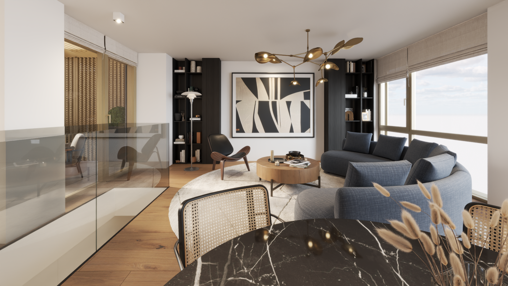 Enfin, les baies vitrées en triple vitrage maximisent la lumière naturelle tout en réduisant les pertes énergétiques