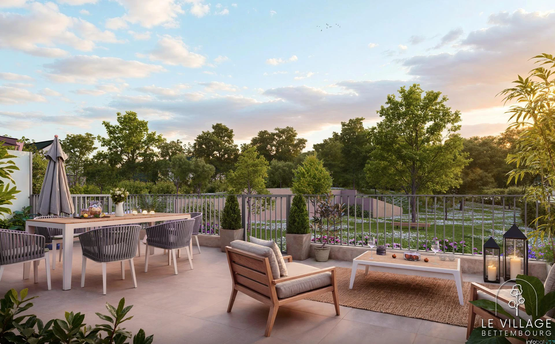 Avec ce logement en VEFA, profitez d’intérieurs spacieux, et de terrasses privatives donnant sur un grand jardin de 17 ares. Par exemple, échangez autour d’un repas convivial avec votre famille, puis promenez-vous dans le verger.